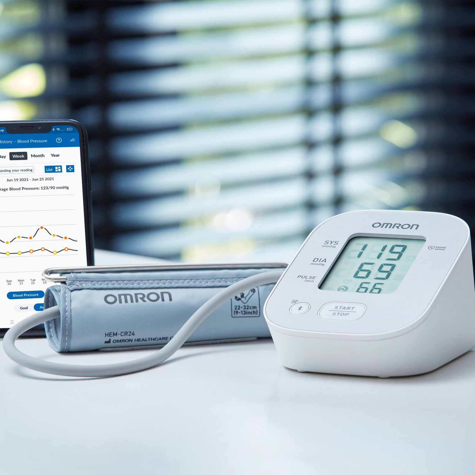 Anslut till din hälsa: OMRON X2 Smart synkroniseras med OMRON connect-appen. Från appen får du en översikt för att spåra ditt blodtryck och andra viktiga hälsoparametrar.